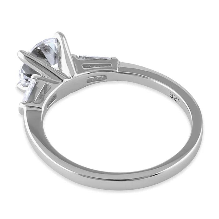 ANILLO DE COMPROMISO EN PLATA CON CIRCON CENTRAL REDONDO Y LATERALES TIPO BAGUETTE APCH37